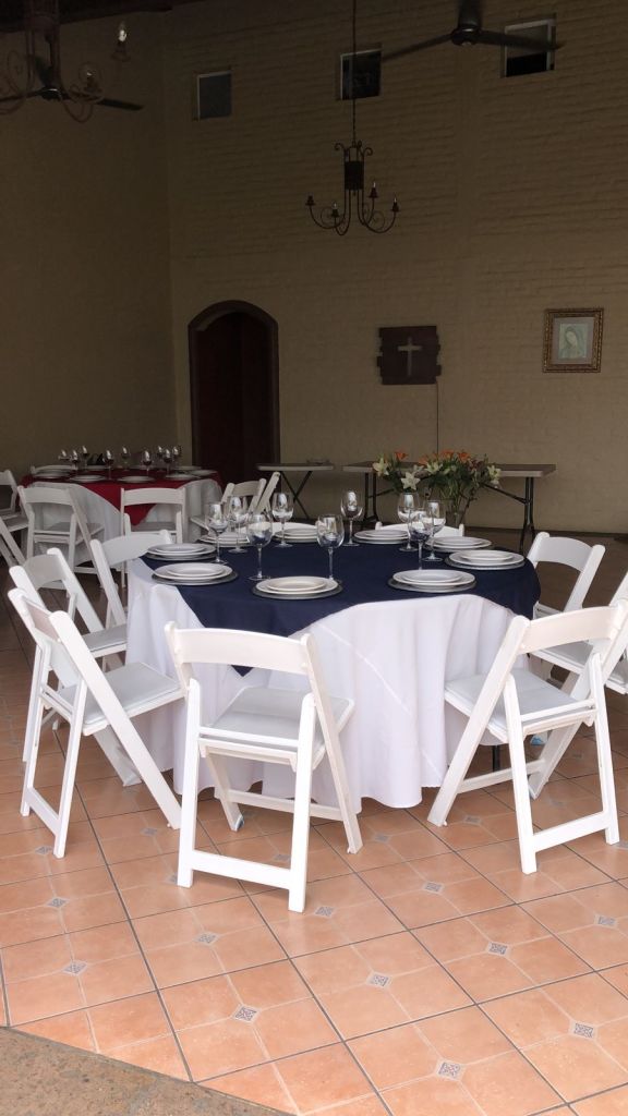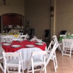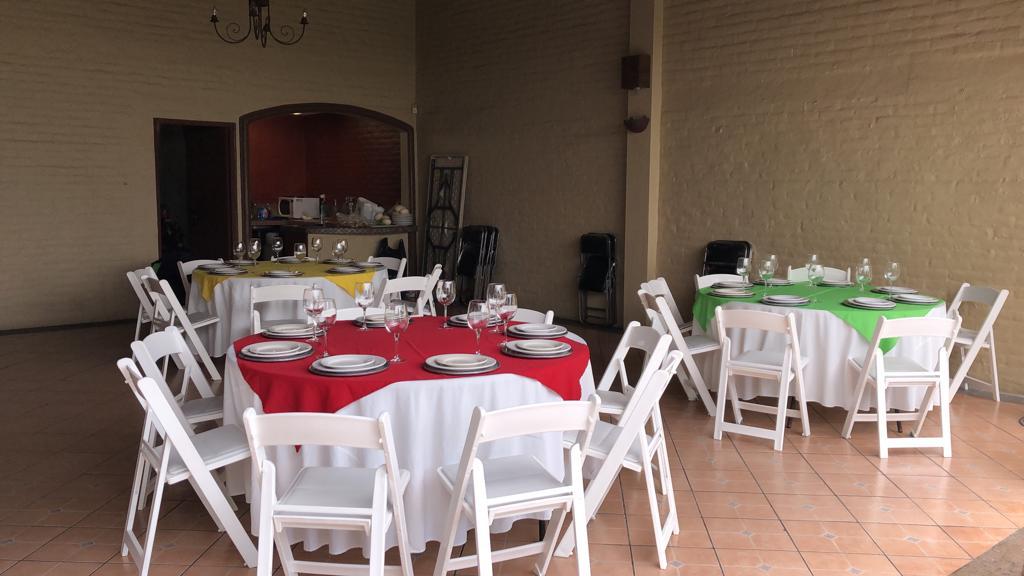 - Mesa extra (con 10 sillas y mantelería blanca)